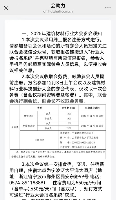 中國建筑材料聯(lián)合會于2025年12月3日在浙江寧波召開2025年建筑材料行業(yè)大會。