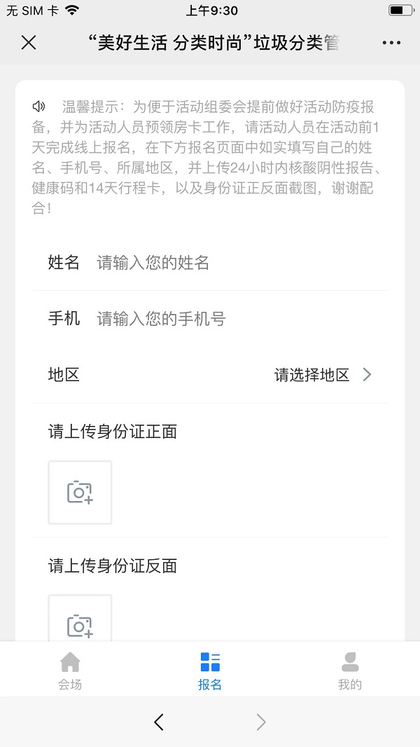 報名輸入姓名手機號,可以選擇地區(qū),并上傳身份證圖片等。