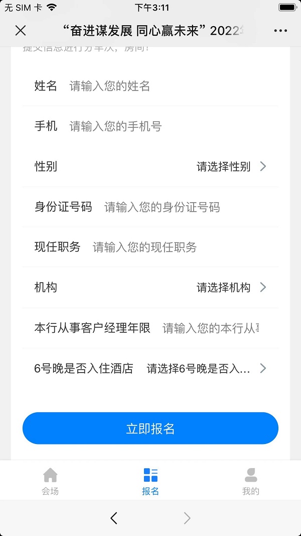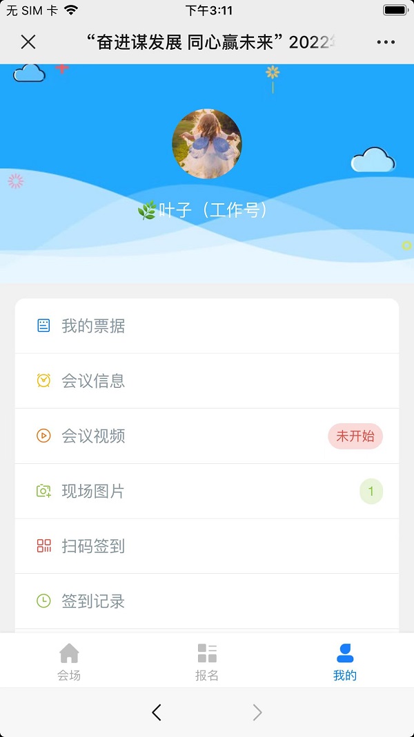 會場包括活動通知,我坐的車子,我的座位號,宴會號碼,我的房間號,大會信息,掃碼簽到,圖文直播,大會文件,宴會廳導(dǎo)航,二次報名信息更正等模塊。