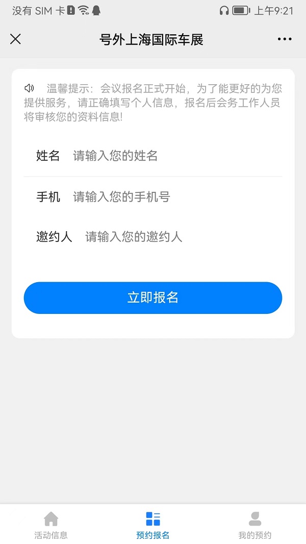 2023第20屆上海國際汽車工業(yè)博覽會——號外上海國際車展由會助力智能會務系統(tǒng)支持,會務內(nèi)容包括活動信息,預約報名,我的報名等內(nèi)容。