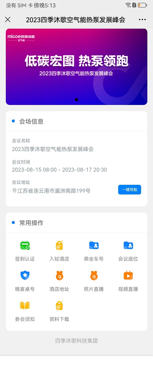“低碳宏圖,熱泵領(lǐng)跑” 2023四季沐歌空氣能熱泵發(fā)展峰會(huì)于8月15日在江蘇連云港舉行,會(huì)議全程使用會(huì)助力智能會(huì)務(wù)系統(tǒng)
