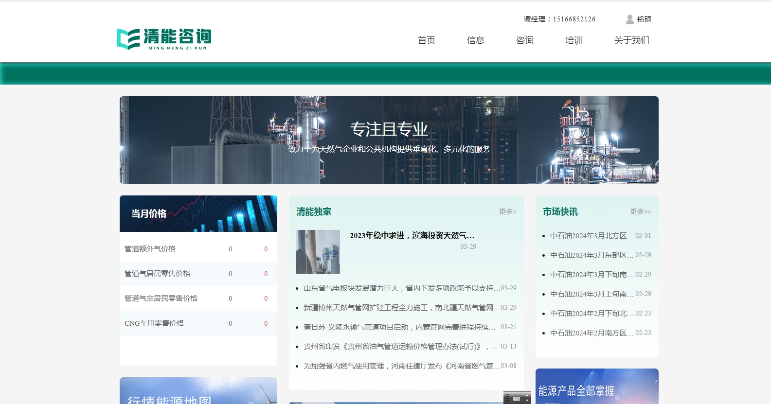 清能咨詢(CEC)是專注于中國天然氣市場研究的第三方信息服務(wù)商,清能咨詢是銘碩網(wǎng)絡(luò)為其定制的官方網(wǎng)站。網(wǎng)站包括首頁,信息,咨詢,培訓(xùn),關(guān)于我們等內(nèi)容。